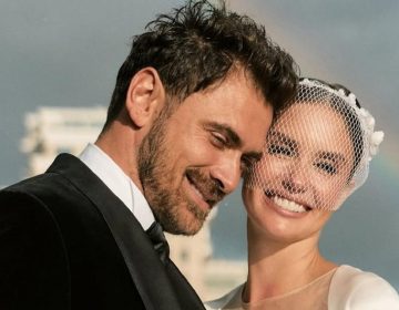 Дочь и молодая жена поддерживают 81-летнего Дугласа за руки, а тот еле держится на ногах и с обожанием смотрит на жену