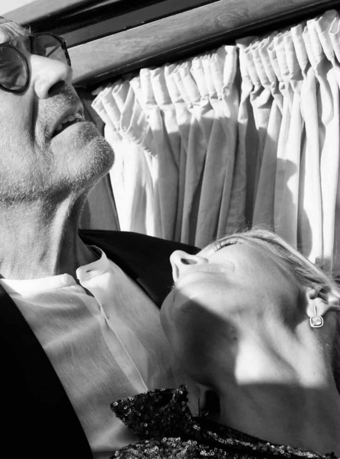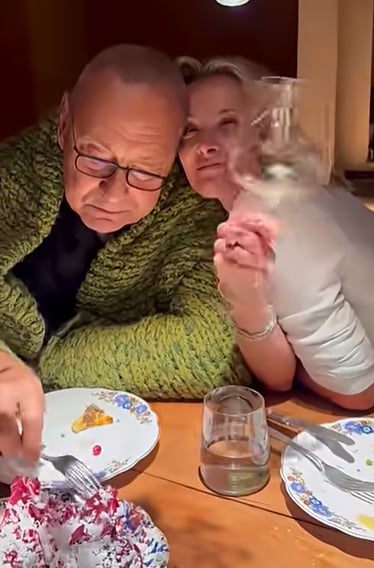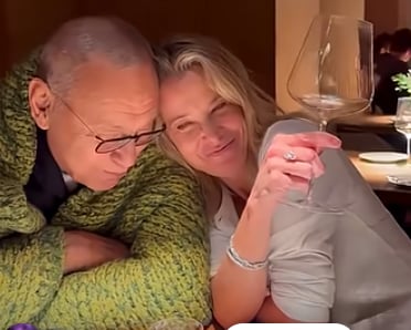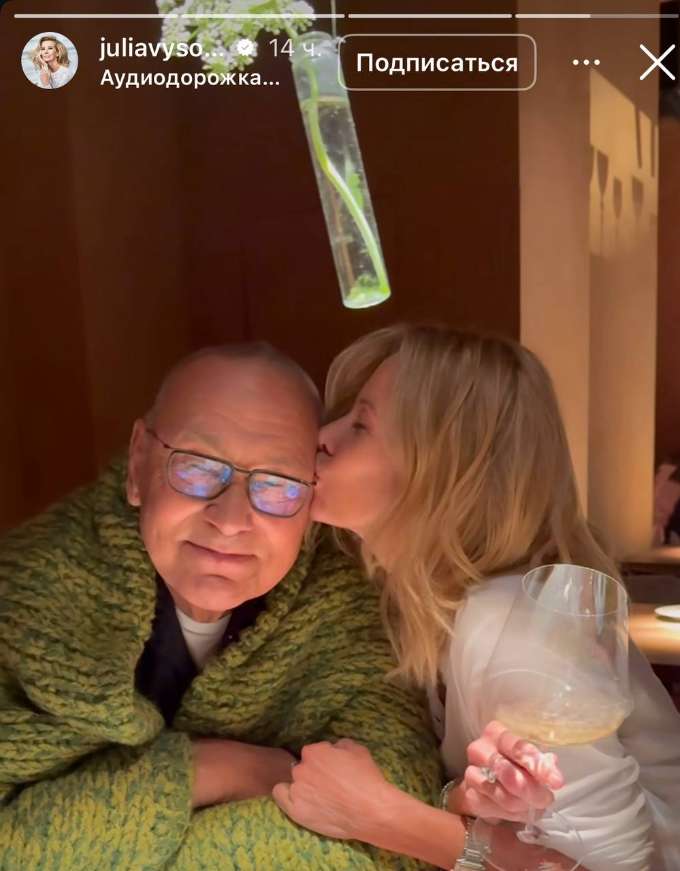 Юлия Высоцкая обнародовала романтические кадры с супругом. Кончаловский с женой сходили на свидание в ресторан. На новых снимках Юлия нежничает с мужем и целует режиссера, укутанного в плед.