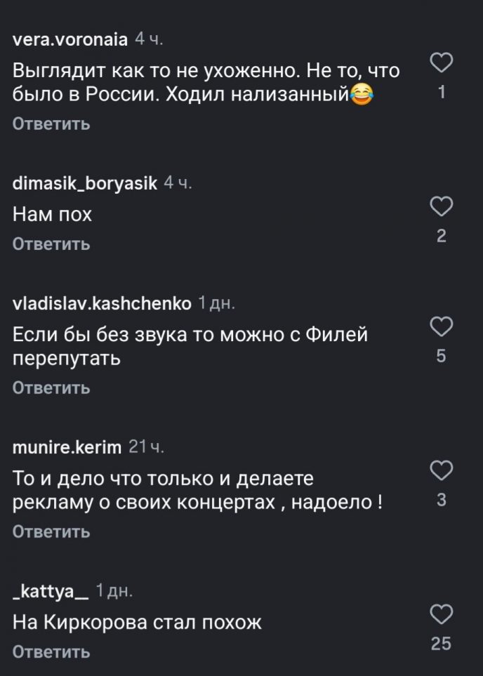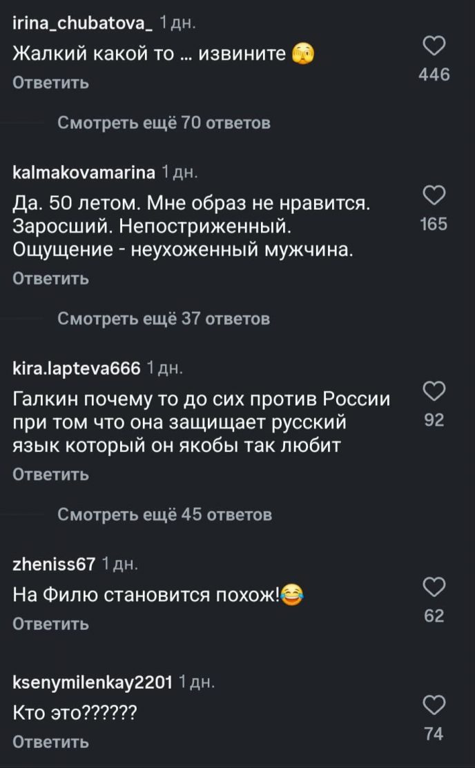 Лобода прокомментировала кадры изменившегося до неузнаваемости Галкина, а пользователи Сети без толики стеснения назвали Светлану и Максима “изгоями” в обсуждениях. Многие и вовсе перепутали мужа Пугачевой, с Киркоровым, которого Максим, как оказалось, на дух не переносит.