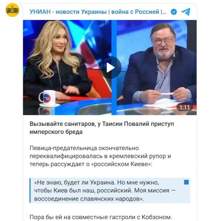 “Там находится мой дом. Мне очень надо, чтобы Киев был наш”,- без толики стеснения заявила бывшая украинская артистка. Пользователи Сети не оставили слова Повалий без ответа. “Не видать тебе ни дома своего, ни тем более Киева”, “Как ты низко пала, Тася”, “Боже мой, как она могла такое ляпнуть?”, “Что с тобой сделали деньги? Ты окончательно продалась?”,