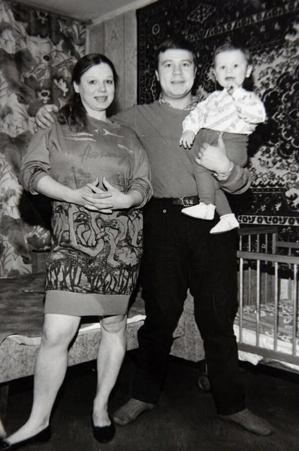С сыном и женой