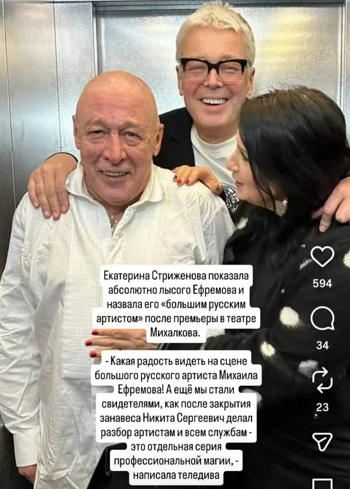 Стриженова показала неузнаваемого Ефремова: Полностью лысый и сутулый, глаз практически не видно под нависшими грыжами. Екатерина назвала коллегу “большим русским артистом”, будто позабыв, что натворил Михаил в одурманенном угаре. Коллеги и друзья простили Михаила, который “расплатился за свои грехи в местах не столь отдаленных”.
