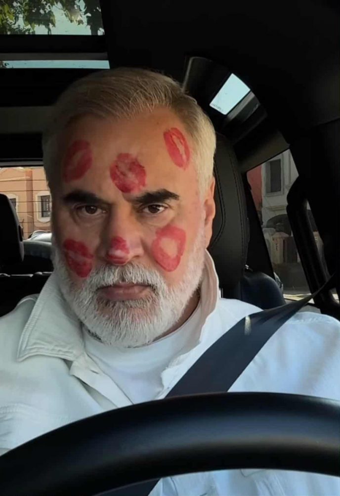На новых кадрах певица страстно расцеловала мужа, усыпав его лицо следами ярко-красных поцелуев. Поклонники не удержались от шуток.