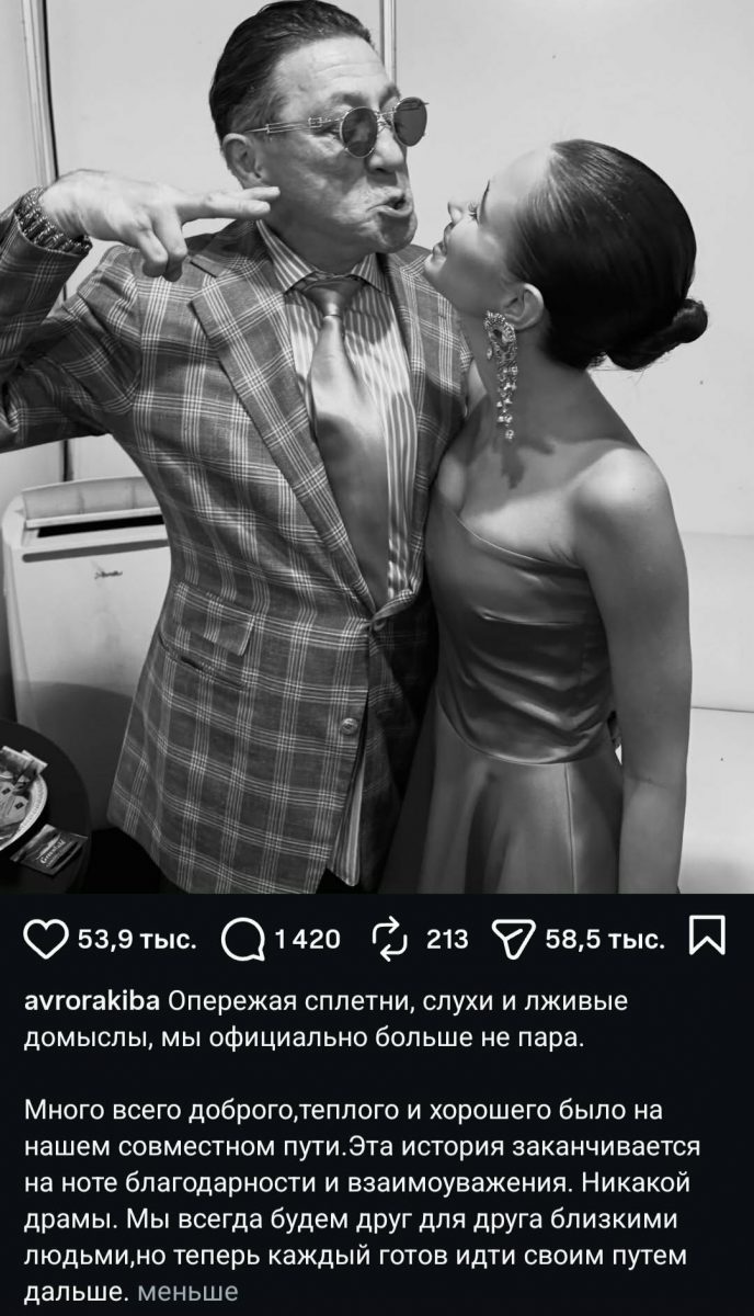 19-летняя невеста Лепса официально сообщила о расставании с 63-летним возлюбленным. “Опережая сплетни, слухи и лживые домыслы…”,- с этих слов Киба начала свое обращение о разрыве с певцом. Инсайдер рассказал, что Лепс и Киба расстались после отдыха на Пхукете: “Они буквально на днях наслаждались отдыхом в одном из самых дорогих отелей на Пхукете. Друзья их наблюдали на nnяже почти каждый день”.
