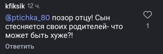 “В школе парнишке нелегко приходится, наверное. Мальчишки задираются”, “Понимаю парня. В таком возрасте стыдно, когда родители выставляют себя на смех”, “Полна такая мудрая женщина”. “Маска — это его способ спрятаться от шума вокруг отца”, “Дибров гордится собой, я надеюсь”, “Насколько непросто расти под пристальным вниманием всей страны”,- пишут пользователи Сети в обсуждениях.