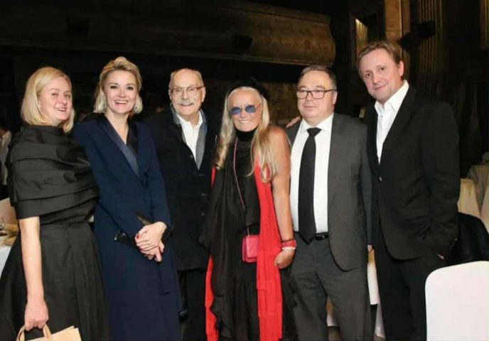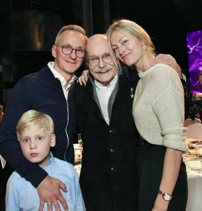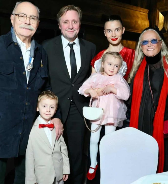 На банкете в честь 80-летия Михалкова собрался весь клан! На снимках с празднования юбилея режиссера можно заметить 88-летнего Кончаловского с молодой женой, 78-летнюю супругу Никиты Сергеевича, 3 детей режиссера от Татьяны Михалковой, сына мэтра от Вертинской, внуков и правнуков Михалкова.