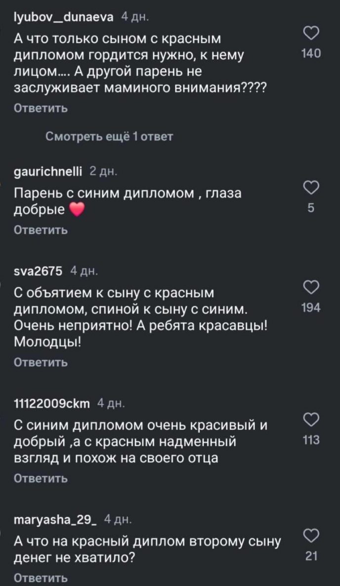 “Парень с синим дипломом недостоин внимания мамы?”,- пишут пользователи Интернета в комментариях.